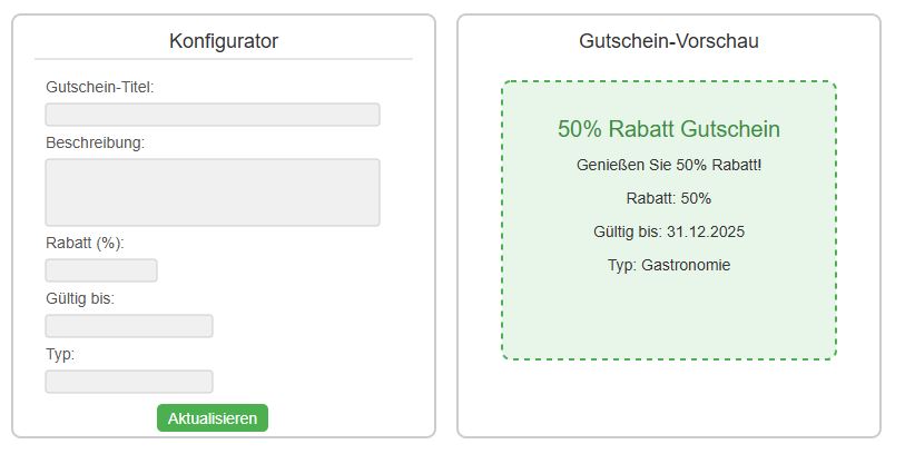 - zahlreiche Gutschein-Generatoren, z.B. für Helikopter-Flüge (Schnittstellen-Programmerierung und Umsetzung der Oberfläche zur Generierung von Gutscheinen aus einem Shop-System)